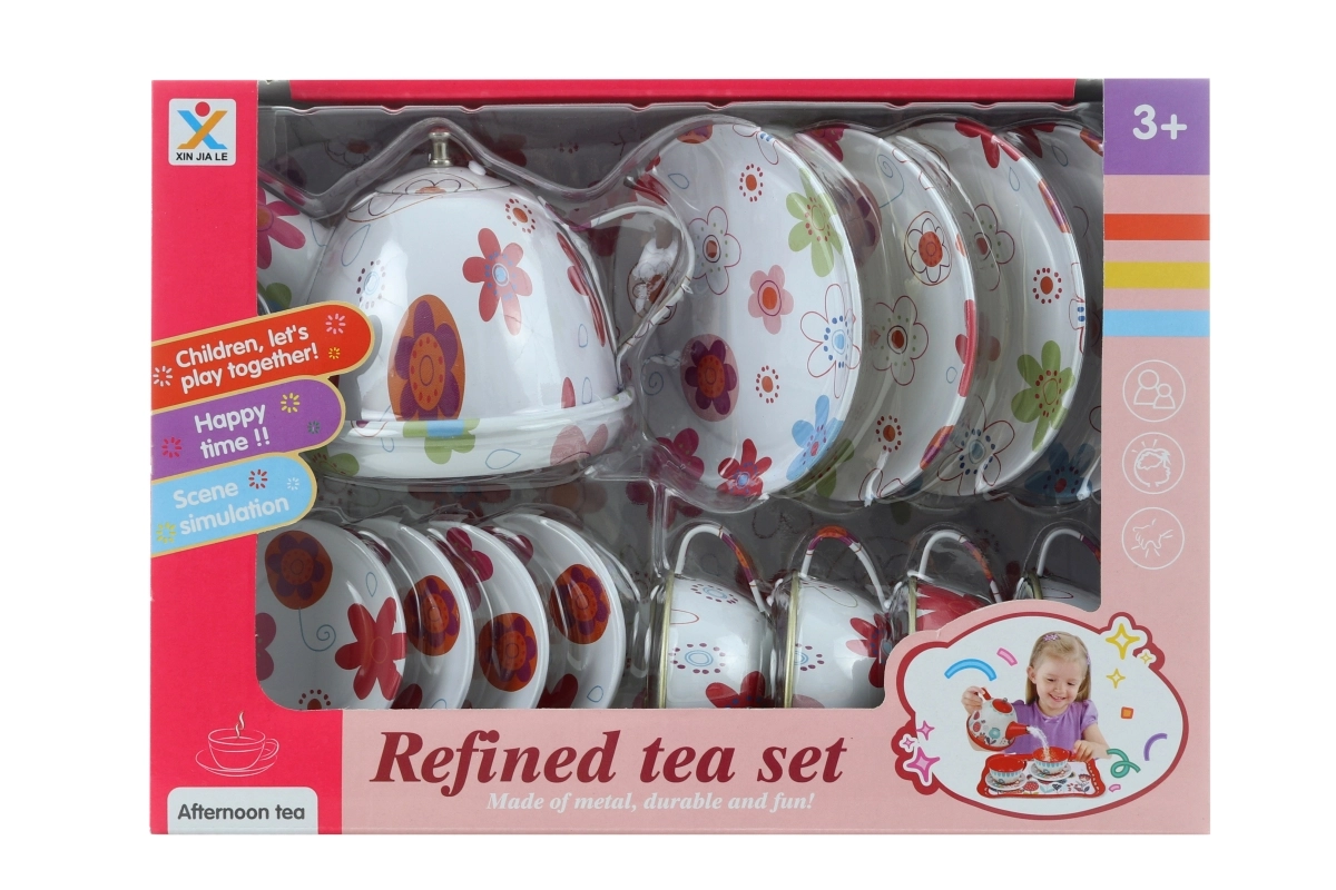 Mīlīgs skārda tējas komplekts ar ziedu motīvu iepriecinās katru mazo saimnieci. Ideāli piemērots bērnu tējas rituāliem un sociālās spēles attīstīšanai. Satur visu nepieciešamo servēšanai un ir drošs bērniem no 3 gadu vecuma. Viegls skārds, ziedu dizains un praktisks iepakojums kastē padara šo komplektu par lielisku dāvanu.