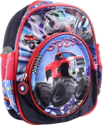 Košais Monster Truck apdruka un veidotais priekšējais panelis piešķir mugursomai izturību un pievilcīgu izskatu, kas bērnus uzrunā no pirmā acu uzmetiena.
