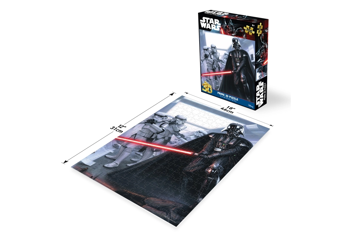 Izbaudi ikonisko sāgu ar 3D puzli STAR WARS Classic, kas sastāv no 300 detaļām. Pateicoties lentikulārajam 3D efektam, motīvs ar DARTH VADER un stormtrooperiem izskatās telpisks un dzīvīgs. Puzle ir ideāli piemērota Star Wars faniem, attīsta pacietību, loģiku un sīko motoriku. Piemērots bērniem no 6 gadu vecuma.