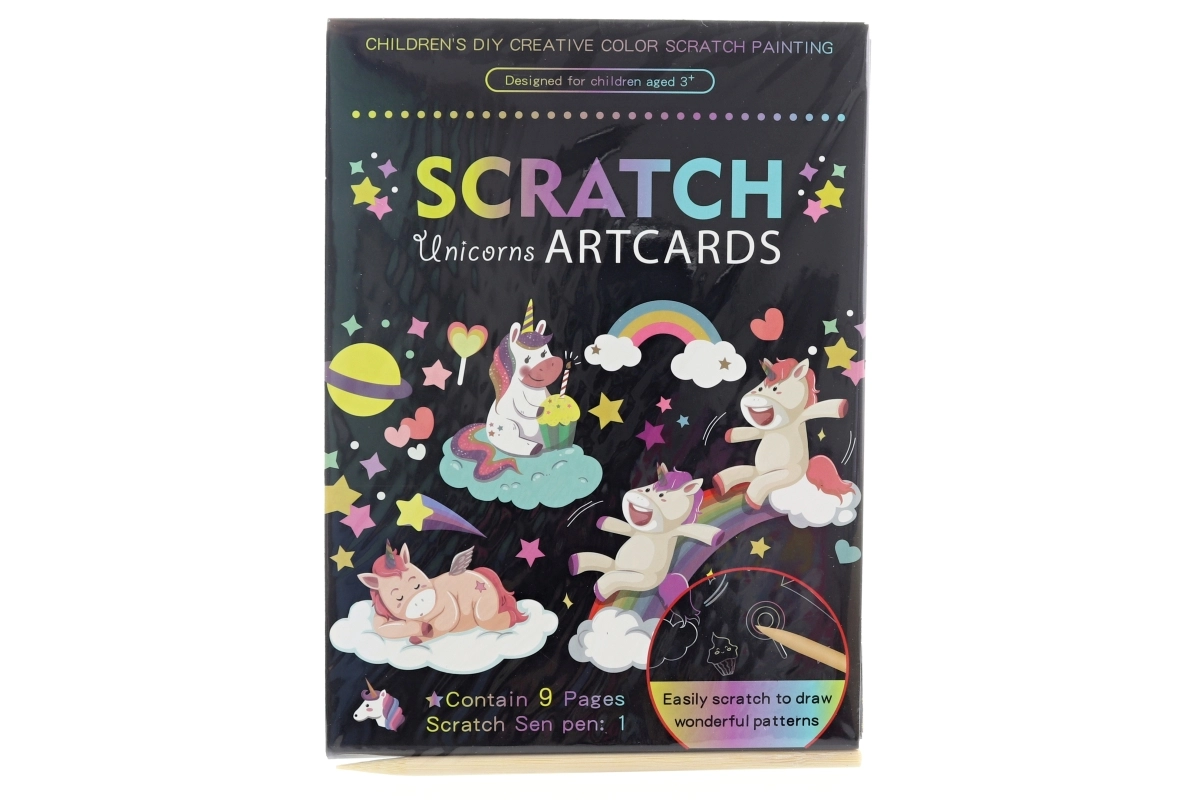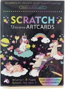 Šis radošais komplekts piedāvā aizraujošu attēlu izskrāpēšanu ar iecienīto vienradžu motīvu. Izmantojot iekļauto koka rīku, maigi atklāsiet krāsainos slāņus un radīsiet efektīgus attēlus, kas piemēroti izstādīšanai vai dāvināšanai.