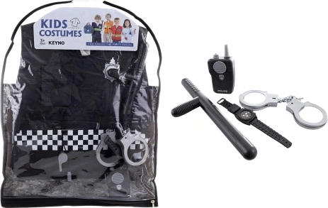Bērnu policista kostīms ar aksesuāriem sniedz iztēles un darbības pilnas rotaļas. Pateicoties reālistiskiem elementiem, piemēram, rācijai, rokudzelžiem un gumulzizlim, bērni var izbaudīt autentiskus lomspēļu scenārijus. Vieglā poliestera veste ir ērta valkāšanai un viegli uzvelkama.