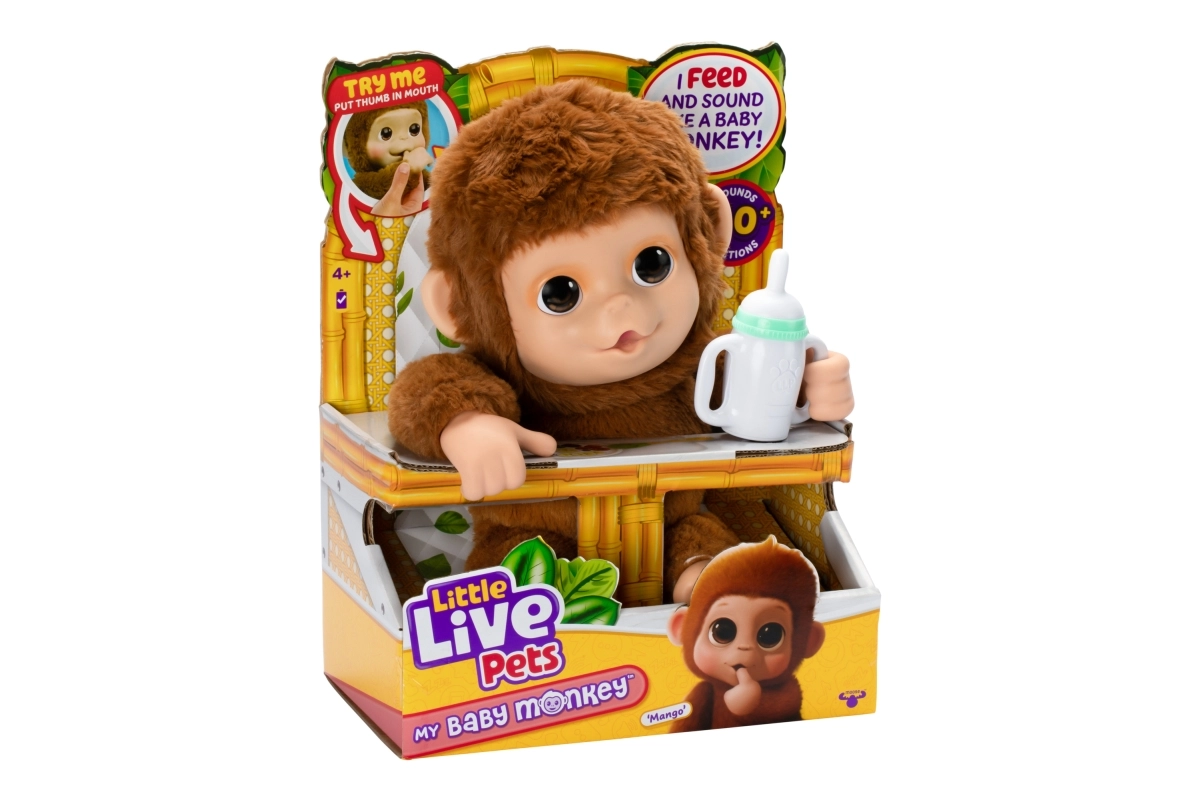 Atklājiet jaunu rotaļu draugu – interaktīvo mērkaķīti Mango no Little Live Pets. Šī mīlīgā mērkaķīte reaģē uz pieskārieniem un kustībām, tai ir vairāk nekā 50 skaņas un reakcijas, tā prot kāpelēt, karāties ar galvu uz leju, un tās reālistiskās sejas kustības piešķir spēlei īpašu burvību. Tā ir maiga pieskārienam, mīl mīļoties, jūs varat to pabarot ar pudelīti vai ļaut tai zīst īkšķi – ideāla draudzene radošām rotaļām.