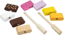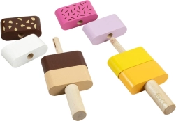 Sniedziet bērniem radošu izklaidi ar DETOA koka saliekamajiem saldējumiem. Katram gabaliņam ir gludas, patīkamas malas un krāsaini segmenti, kas viegli uzverami uz koka kātiņiem. Mazie “konditori” vingrinās pirkstiņus, mācīsies atšķirt krāsas un veidos savas krāsu kombinācijas.