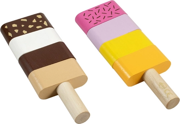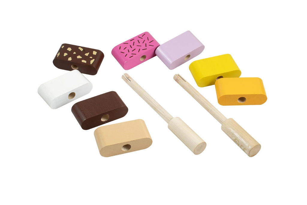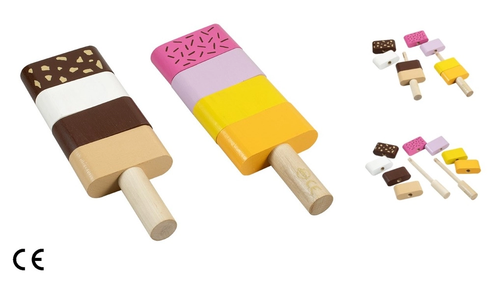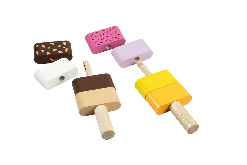 Noņemamie segmenti ļauj jebkādu secību un kombinācijas. Bērni viegli trenē krāsu atšķiršanu un radošumu, veidojot saldējumus.