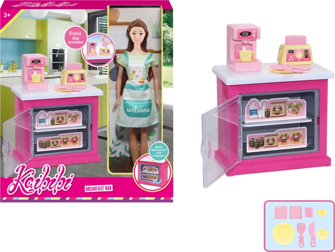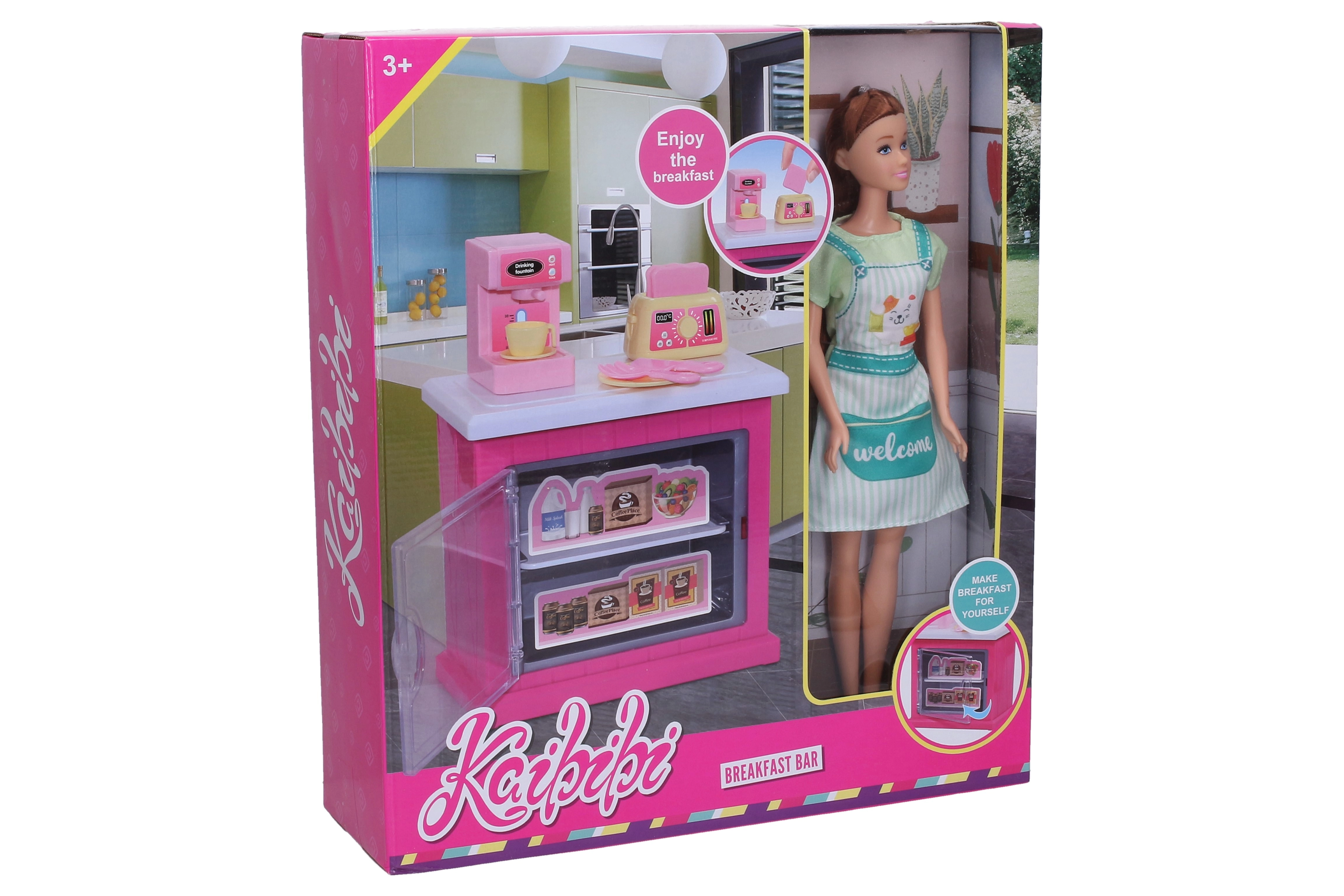 Iepakojumā ir iekļauts stilīgs virtuves skapītis, funkcionāli piederumi, piemēram, kafijas automāts un tosteris, kā arī citi virtuves aksesuāri, ar kuriem bērni viegli “pagatavos kafiju” un kraukšķīgas tostes saviem viesiem.