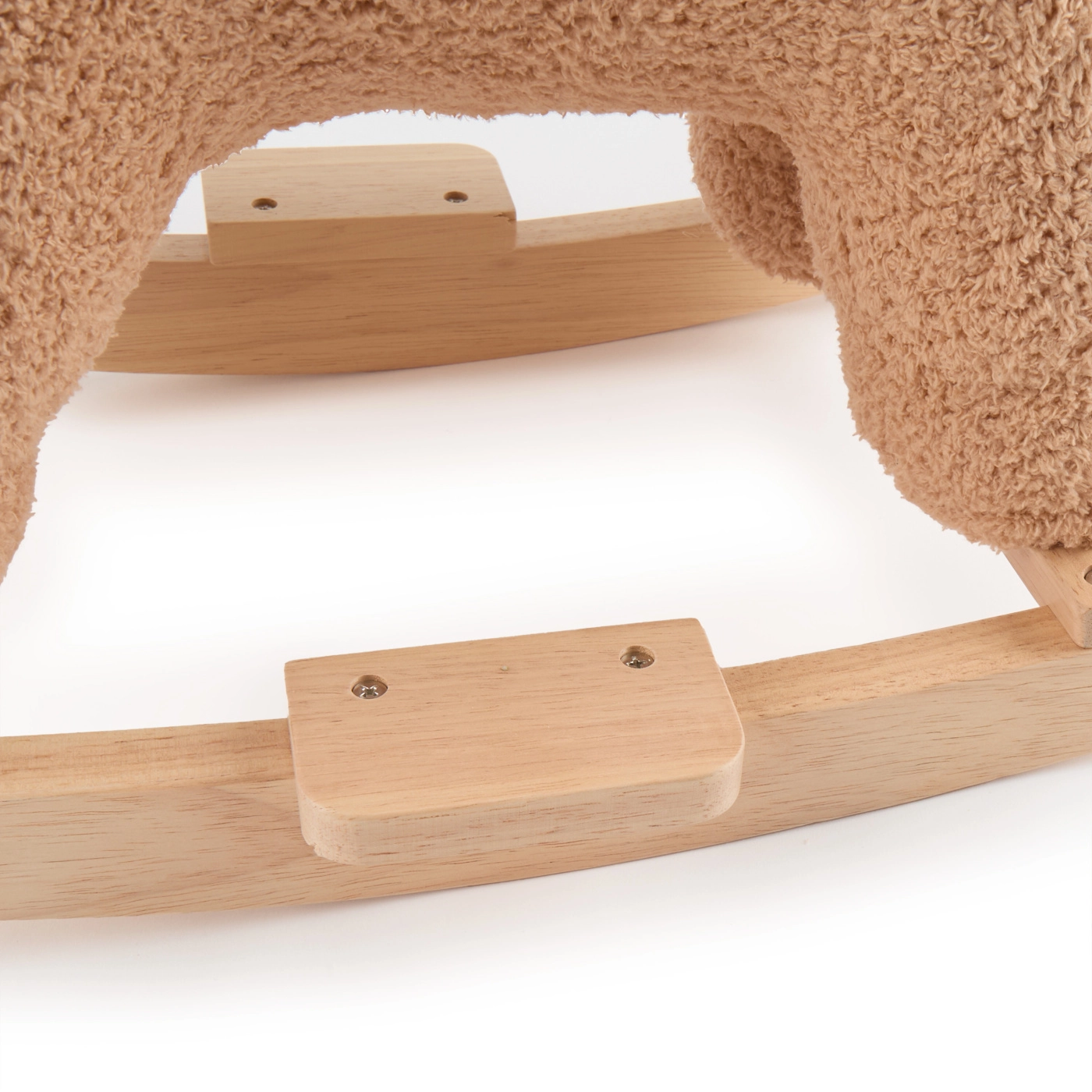 Izturīga koka pamatne ar gludi noapaļotām sliecēm un iebūvētu aizsardzību pret apgāšanos nodrošina drošu un vienmērīgu šūpošanos.