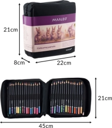 Ar šo MAALEO komplektu jūs iegūsiet visu, kas nepieciešams zīmēšanai un krāsošanai vienuviet. 120 piesātināti toņi bez atkārtošanās ir marķēti ar numuriem un nosaukumiem ērtai orientēšanai un vienmērīgām krāsu pārejām ilustrācijās, skicēs un krāsojamajās grāmatās.