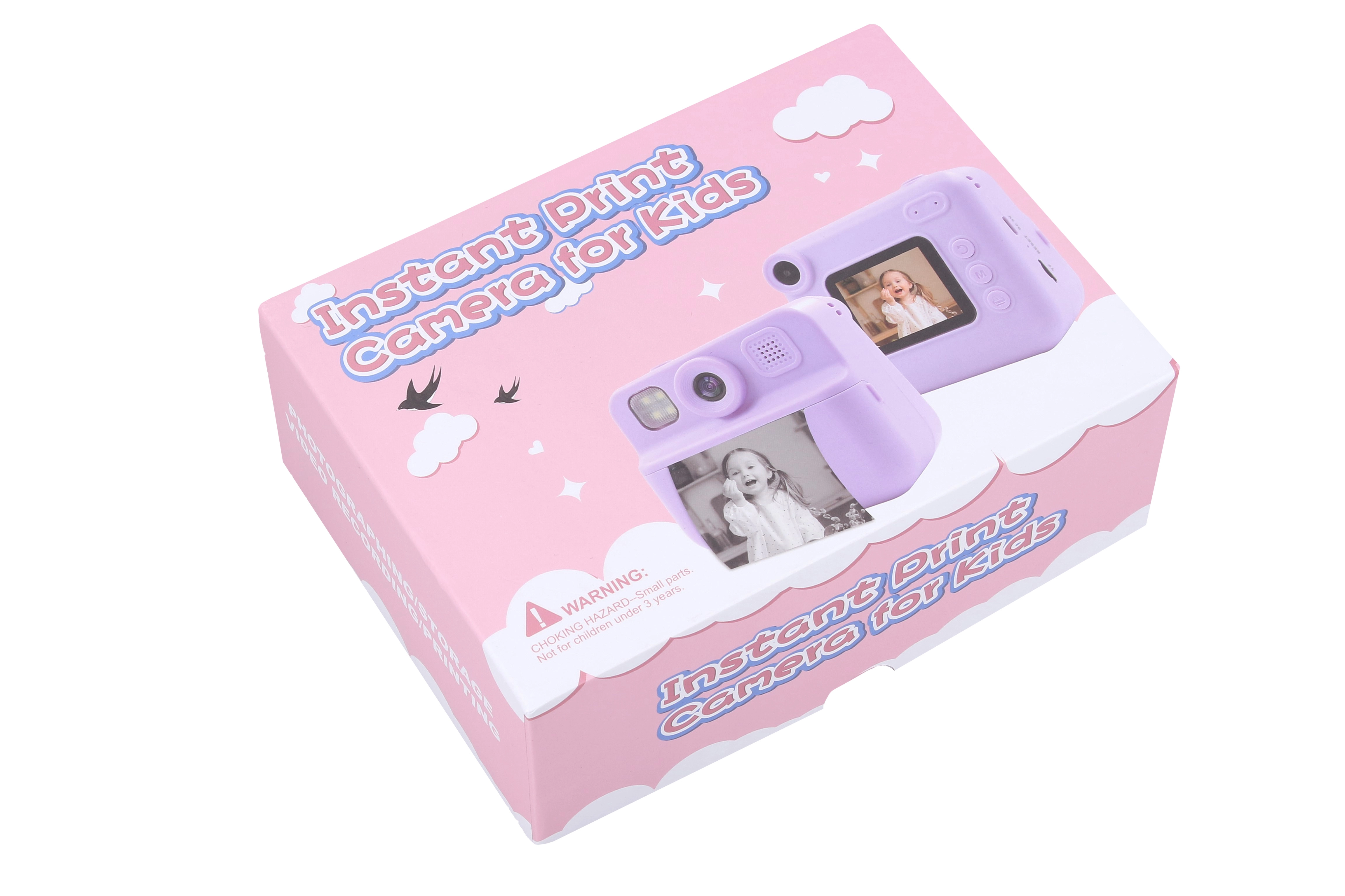 Bērnu momentānais fotoaparāts apvieno radošu fotografēšanu ar tūlītēju prieku par izdrukātu fotogrāfiju. Termālā izdruka bez tintes ir tīra, ātra un pieejama, fotopapīra platums 5,5 cm. Tas uzņem asus 12 Mpx kadrus un plūdenu Full HD (1920×1080) video, lai bērni varētu izbaudīt atmiņu radīšanu un dalīšanos ar tām.
