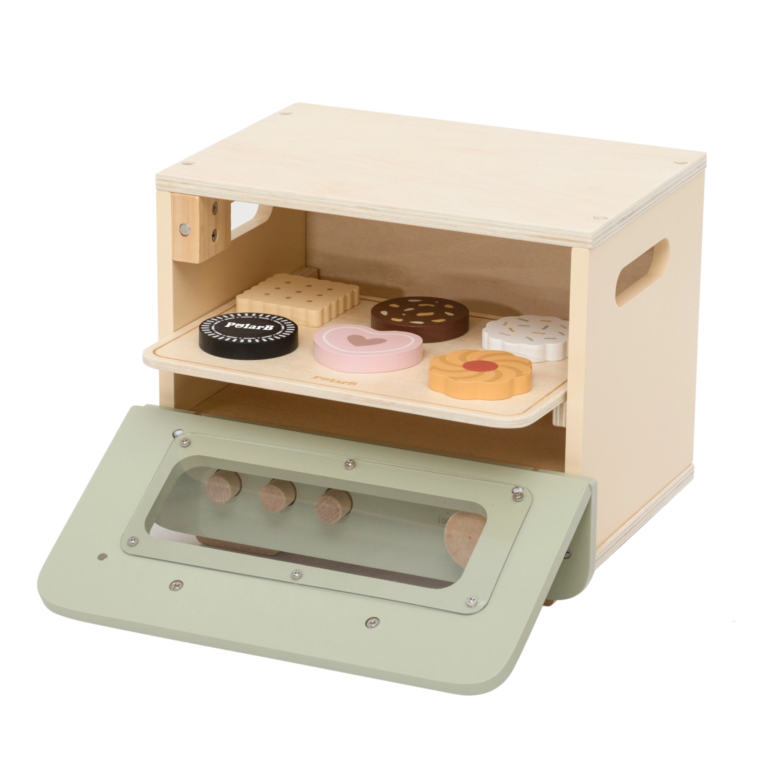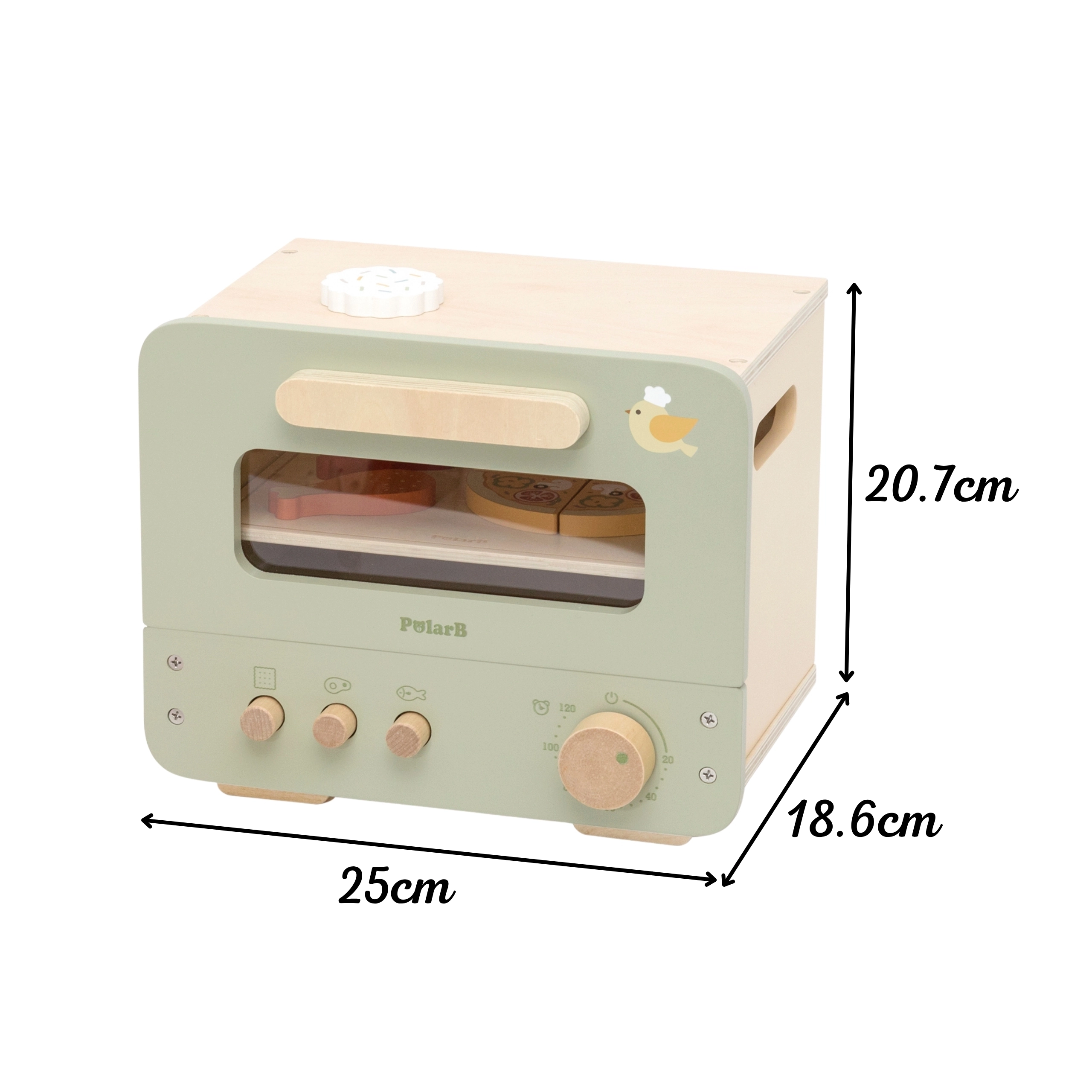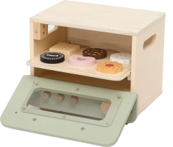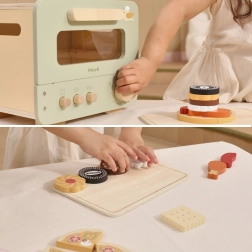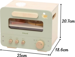 Šī stilīgā bērnu krāsniņa zaļi–bēšā krāsojumā sniedz autentisku cepšanas pieredzi. Caurspīdīgs lodziņš, funkcionāli kloķīši un noņemama panna aicina radoši pasniegt saldas un sāļas gardas lietas. Bērni var griezt un salikt mini picu, “cepināt” cepumus un trenēt veiklību un komunikāciju lomu spēlēs.
