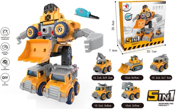 Atklājiet universālu rotaļlietu, kas apvieno izklaidi ar mācīšanos. Komplekts Robots 5 vienā DIY ļauj bērniem salikt robotu un pārveidot to par dažādiem transportlīdzekļiem. Vienkāršie savienojuma elementi un bērnu skrūvgriezis veicina roku–acu koordināciju un tehniskās iemaņas.