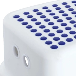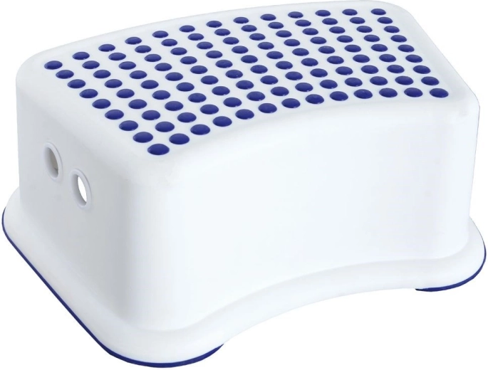 Praktisks un neslīdošs pakāpiens bērniem un pieaugušajiem atvieglo ikdienas aizsniegšanu līdz izlietnei, plauktiem vai dušai. Tam ir stabila konstrukcija, kompakti izmēri 26 × 36 × 13 cm un neslīdošs līdz 80 kg. Izgatavots no kvalitatīvas plastmasas baltā krāsā ar zilām detaļām un neslīdošu gumiju augšējā virsmā un apakšējās malās.