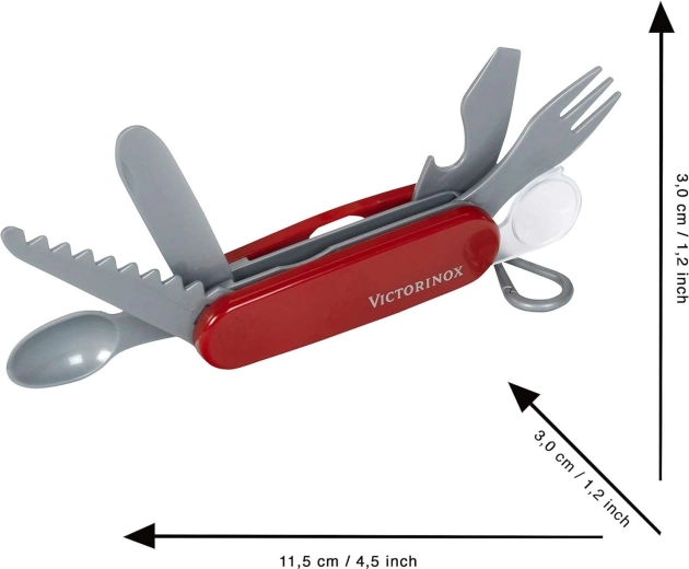 Bērnu kabatas nazis VICTORINOX no KLEIN ir uzticama, bet pilnībā droša leģendārā Šveices naža imitācija. Pateicoties precīzai izgatavošanai, sarkanajam rokturim ar logo un praktiskajai karabīnei, mazie piedzīvojumu meklētāji to var piestiprināt, piemēram, pie jostas un turēt vienmēr pa rokai.
