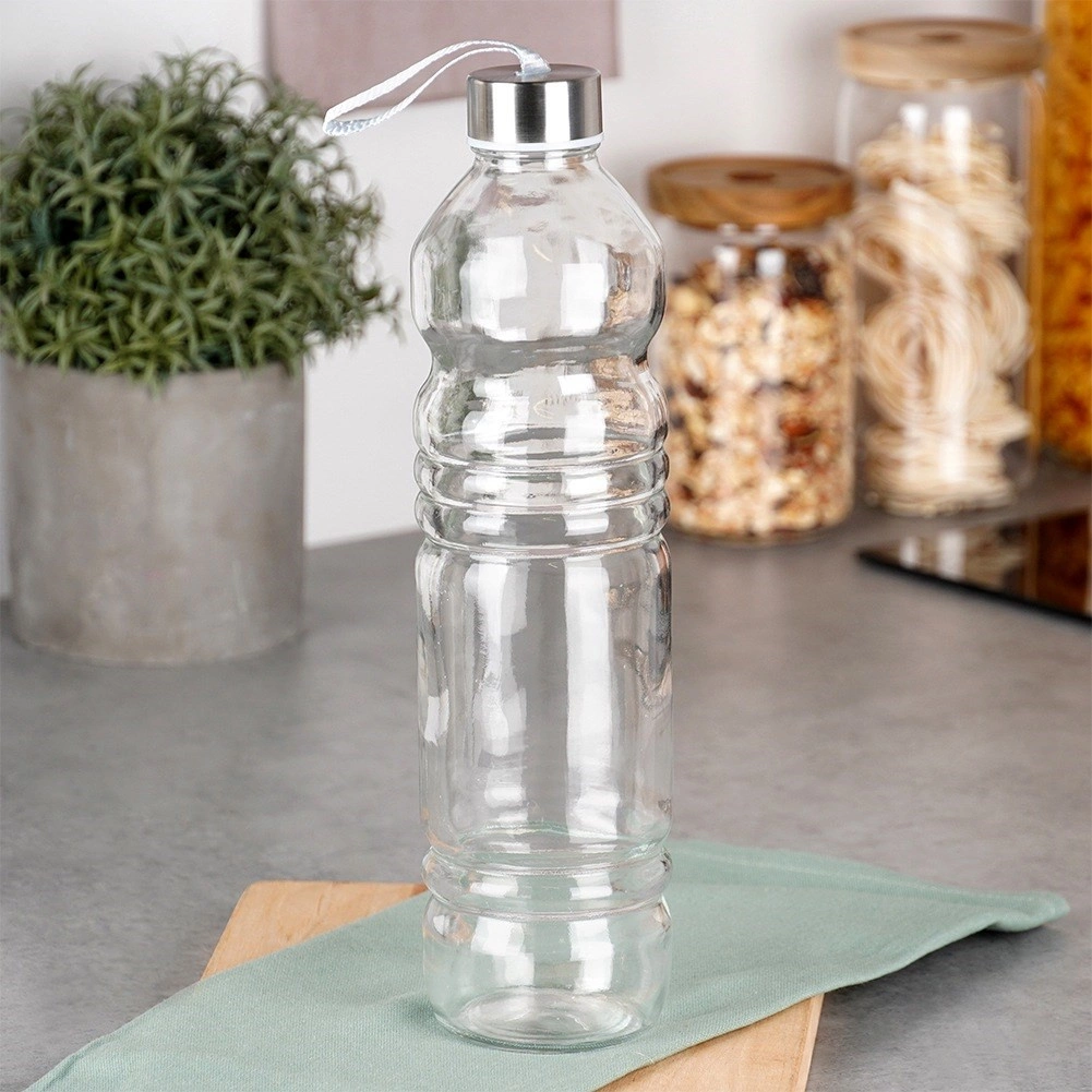 Praktiska stikla pudele ar tilpumu 1,1 l, ar metāla skrūvējamu vāciņu un silikona blīvējumu, kas nodrošina 100% hermētiskumu. Ideāli piemērota ūdenim, sulām, limonādēm un smūtijiem, ar ērtu satvērienu un vienkāršu kopšanu. Piemērota ceļojumiem, sportam un ikdienas dzeršanas režīmam, droši mazgājama trauku mazgājamā mašīnā un šķidrumiem līdz +60 °C.