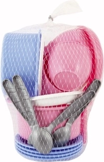 Ar šo košo un daudzkrāsaino bērnu trauku komplektu bērni var jebkur izbaudīt iedomātu gardumu gatavošanu. Lieliski piemērots smilšu laukumiem, dārzam vai pludmalei, kur tas veicina radošumu un interaktīvu rotaļu. Trauki izgatavoti no izturīgas plastmasas, kas piemērota mazām rociņām.