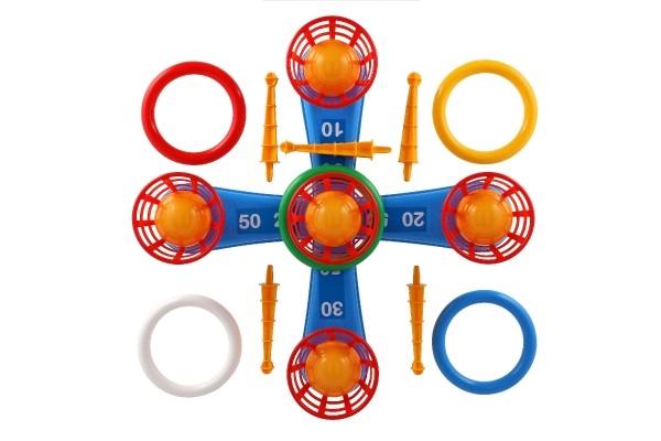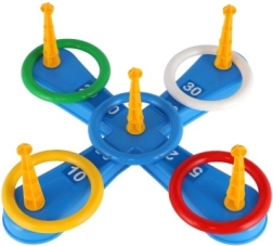 Šī jautrā spēle ir ideāli piemērota pašiem mazākajiem bērniem. Tajā ir krusts ar pieciem tapām, uz kurām bērni met krāsainus plastmasas riņķus, lai krātu punktus. Katrs metiens, kad riņķi izdodas uzlikt uz tapas, nes punktus, veicinot sacensību garu un precizitāti. Otrajā varianta spēlē darbojas tas pats princips, taču tapas ir aizstātas ar groziņiem bumbiņām, kas sniedz jaunu izaicinājumu.