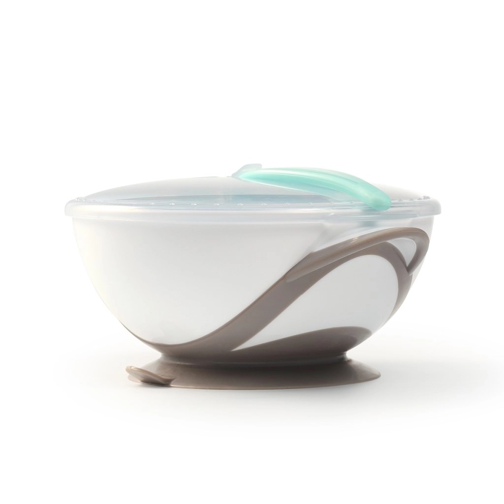 Vairs nekādu apgāztu šķīvju un liekas nekārtības. BABYONO bērnu bļodiņa ar piesūcekni droši pieķeras gludām virsmām, tāpēc paliek savā vietā arī pašēdināšanas laikā. Aizveramais vāciņš sargā saturu no izšļakstīšanās un ir ideāls ceļošanai. Integrētā vieta karotei nodrošina tīru un praktisku glabāšanu.