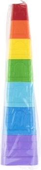 Septiņi kvadrātveida kubi košās krāsās viegli saliekas stabilā tornī un veicina koordināciju un pacietību.