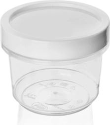 Praktisks apaļš pārtikas trauks ar 300 ml tilpumu, skrūvējamu vāciņu un blīvējumu, kas nodrošina maksimālu hermētiskumu. Izgatavots no droša plastmasas bez BPA, piemērots ledusskapim un saldētavai, var mazgāt trauku mazgājamajā mašīnā un lietot mikroviļņu krāsnī (bez vāciņa). Ideāli piemērots zupām, mērcēm un sīkām sastāvdaļām.