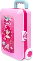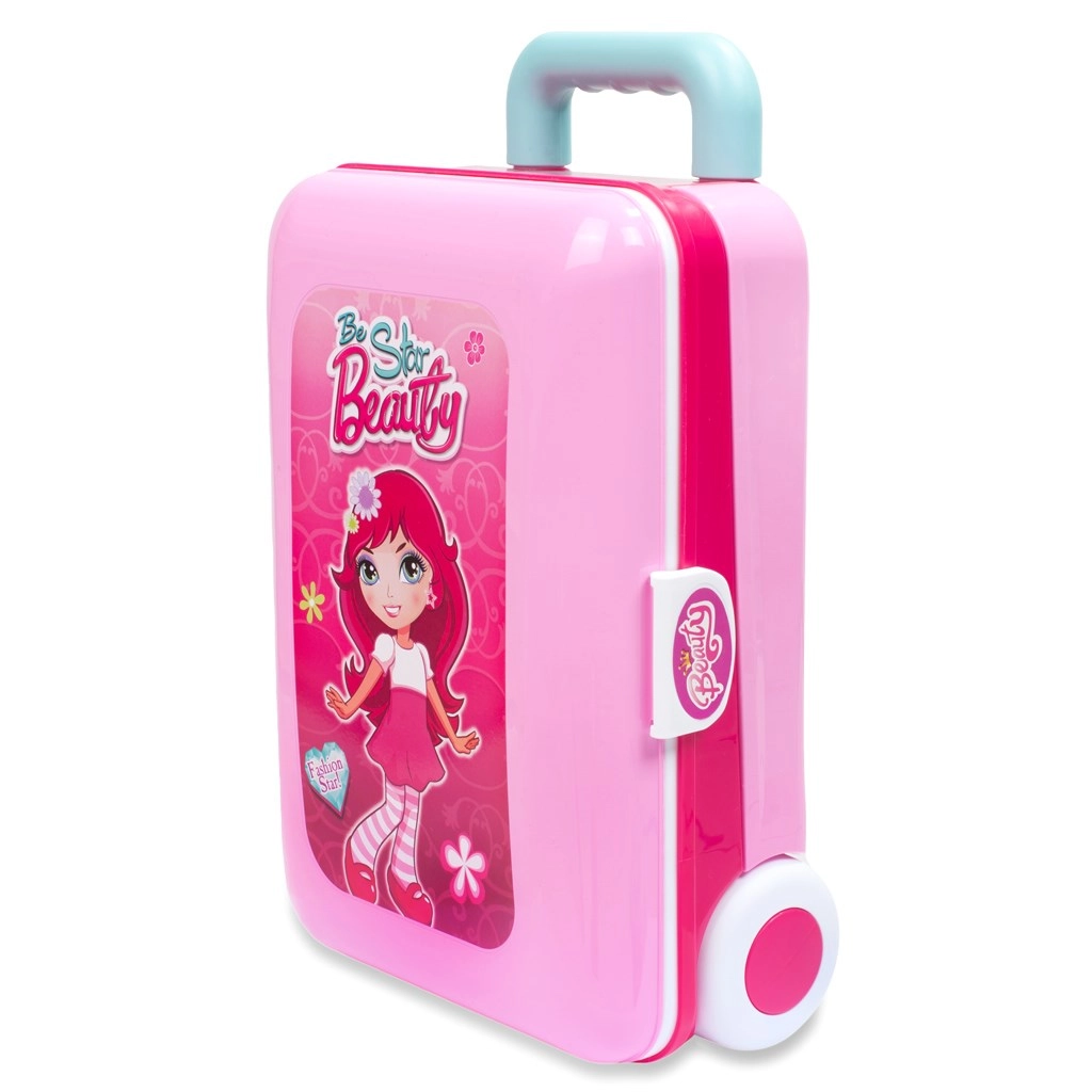 Bagātīgajā komplektācijā ietilpst fēns, ķemme, kaklarota, aproces, gredzeni, “smaržas” un grima piederumi – viss no veselībai nekaitīgas plastmasas un bez īstas kosmētikas. Ceļošanu atvieglo riteņi un teleskopiskais rokturis, lai mazā vizāžiste var paņemt savu salonu līdzi visur.