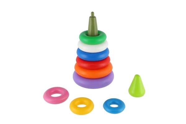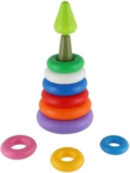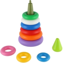 Katrā riņķī ir atšķirīga krāsa, kas palīdz krāsu atpazīšanā un izmēru diferencēšanā. Bērnus piesaistīs spilgtās krāsas, un viņi ar prieku atkal un atkal saliks un izjauks piramīdu.