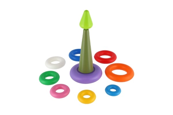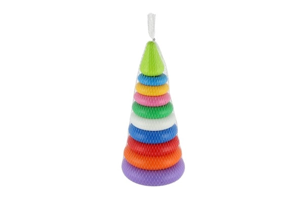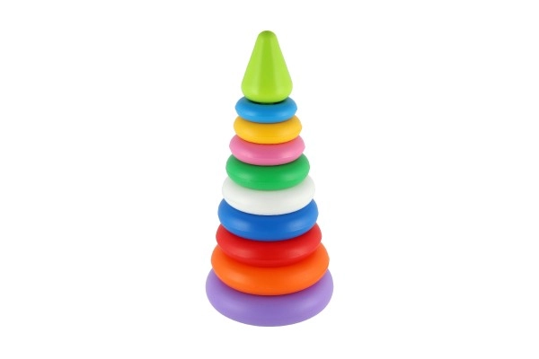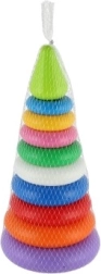 Mūsu košā saliekamā piramīda sastāv no astoņiem dažādu krāsu plastmasas riņķiem, kurus viegli salikt citu uz cita piramīdas formā. Šī didaktiskā rotaļlieta ir veidota, lai stimulētu bērnu vizuālo uztveri un motoriskās iemaņas jau no agrīna vecuma.