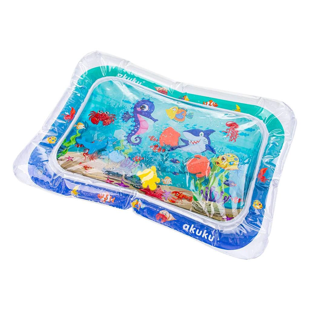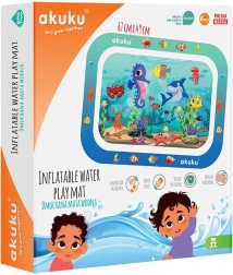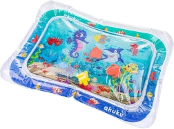 Interaktīvais ūdens paklājiņš Akuku Jūras pasaule ir veidots, lai rotaļīgu aktivitāšu laikā stimulētu maņas un veicinātu pareizu bērna attīstību. Pateicoties ūdens vidum un pieciem peldošiem dzīvnieciņiem, mazulis trenē kustību koordināciju, acu sekošanu un uzlabo līdzsvaru. Vienlaikus maigi tiek stiprināti galvas, kakla, plecu, muguras un vēdera muskuļi.