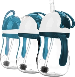 Šī burvju pudelīte ar tilpumu 280 ml ir paredzēta ērtai un patstāvīgai dzeršanai bērniem no 9 mēnešu vecuma. Silikona salmiņš ar atsvaru seko šķidrumam arī tad, kad pudelīte ir sasvērta vai apgriezta ar apakšu uz augšu, tāpēc bērns viegli var izdzert visu dzērienu. Ciešā aizdare samazina noplūdes risku un vienlaikus pasargā salmiņu no nosmērēšanās.