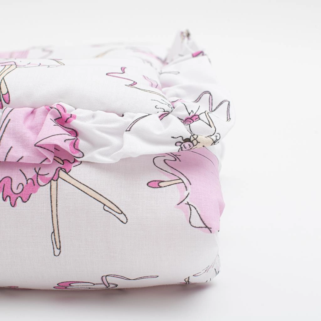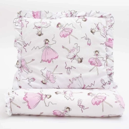 Šis kokvilnas komplekts ratiņiem New Baby Ballerina Bella apvieno maigu izskatu ar praktiskumu un drošību jūsu mazulim. Spilventiņš un segaņa ar smalku volānu ir šūti no augstas kvalitātes 100% kokvilnas, kas ir saudzīga jutīgai bērna ādai. Pildījumu veido 100% antialerģisks šķiedrums, kas kavē mikroorganismu un pelējuma veidošanos.