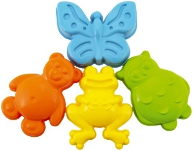 Šis 4 kvalitatīvu plastmasas formiņu komplekts ar mīlīgu dzīvnieciņu formām attīsta bērnu radošumu un sīko motoriku. Pateicoties spilgtām krāsām un ērtām formām, bērni viegli izsit skaistas smilšu figūras gan no parastajām smiltīm, gan no kinetiskajām smiltīm.