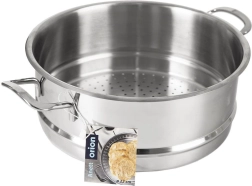 Praktisks nerūsējošā tērauda tvaicēšanas ieliktnis ar 26 cm diametru un 5,5 l tilpumu ļauj pagatavot veselīgus un sulīgus ēdienus – no dārzeņiem un zivīm līdz tvaicētām klimpām. Pateicoties izturīgam nerūsējošajam tēraudam, perforētai apakšai un diviem drošiem rokturiem, tas ir ērti lietojams un viegli tīrāms. Piemērots trauku mazgājamajai mašīnai, lieliski der katliem ar 24 cm diametru, pateicoties profilētam ārējam gredzenam, kas samazina tvaika zudumu.