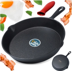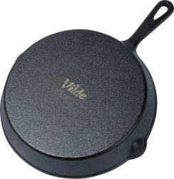 Masīvs čuguns nodrošina izcilu siltumvadītspēju un ilgu siltuma uzkrāšanu kraukšķīgai apcepšanai un saudzīgai sautēšanai.