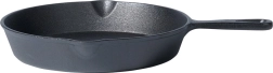 Šī pilnībā čuguna panna melnā krāsā ir īpaši izturīga un ilgmūžīga. Čuguns lieliski vada un saglabā siltumu, tāpēc gaļa, dārzeņi un kartupeļi vienmērīgi izcepas un ēdiens saglabājas silts ilgāk. Divi sānu lejkannas tipa snīpji atvieglo sulu un mērču nolejšanu bez nekārtības.