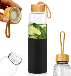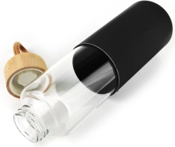 Stilīga un izturīga stikla pudele palīdz ievērot dzeršanas režīmu mājās, birojā un ceļā. Borosilikāta stikls labāk panes temperatūras maiņas, tāpēc bez raizēm varēsiet baudīt ūdeni, limonādi, smūtijus un karstu tēju. Bambusa vāciņš ar siksniņu nodrošina ērtu pārnēsāšanu un piekāršanu.
