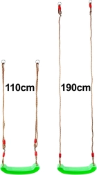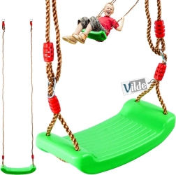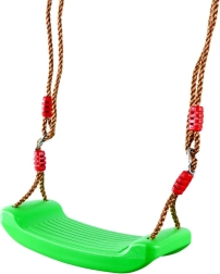 Atklājiet kustību prieku svaigā gaisā ar izturīgām bērnu šūpolēm ar sēdekli. Zaļas krāsas kvalitatīva plastmasas sēdeklis ir profilēts stabilitātei un komfortam, kas samazina noslīdēšanas risku un paaugstina drošību šūpojoties. Virves ar metāla gredzeniem un regulēšanas sprādzēm ļauj ātri iestatīt pareizo augstumu.