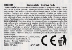 Komplektā ir viss nepieciešamais mazam tējas brīdim: tējkanna, tasītes ar apakštasītēm un karotītes košās krāsās. Iepakots praktiskā sietiņā, kas atvieglo glabāšanu un pārnēsāšanu. Piemērots no 12 mēnešu vecuma.