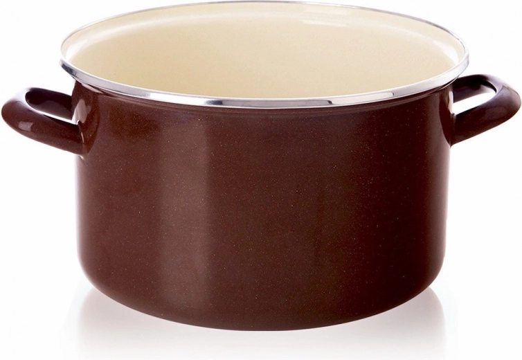 Emalēts tērauds ir higiēnisks, viegli tīrāms un saudzīgs veselībai. Nerūsējošā apmale palielina izturību un aizsargā katla malu.