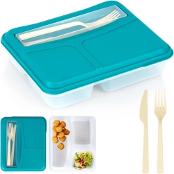 Praktisks pusdienu konteiners ar tilpumu 1,3 l un trim nodalījumiem un integrētiem galda piederumiem vāciņā nodrošina, ka ēdiens nesajaucas. Tas ir viegls un izturīgs, bez BPA, piemērots trauku mazgājamai mašīnai, mikroviļņu krāsnij un saldētavai, ideāls ceļošanai, darbam un skolai.