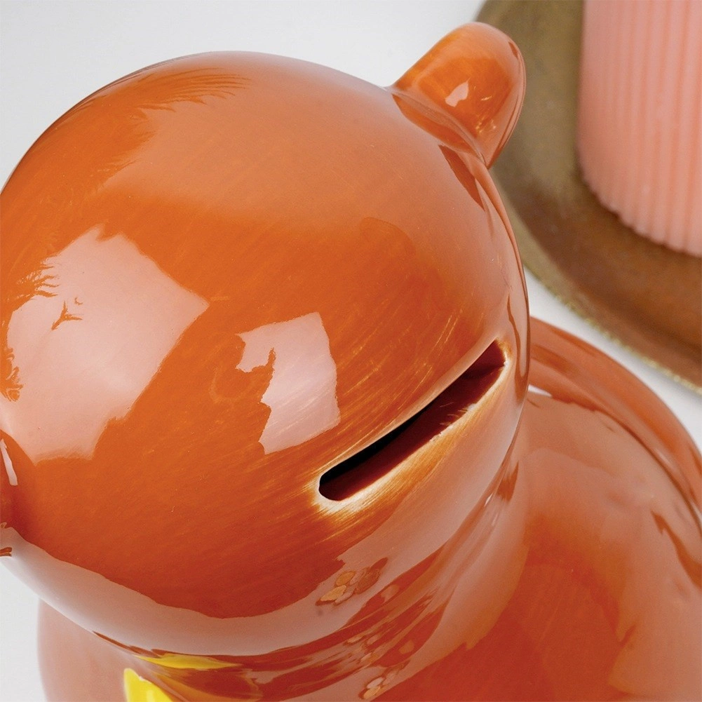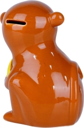 Šī dekoratīvā krājkase mērkaķīša formā priecē ar jautru izskatu un funkcionalitāti. Pateicoties atverei ar korķi apakšpusē, uzkrāto naudu jebkurā laikā varat ērti izņemt, bez nepieciešamības krājkasi lauzt. Spīdīgā keramikas virsma ir viegli kopjama, un košās krāsas piesaista uzmanību bērnistabā, viesistabā un birojā.