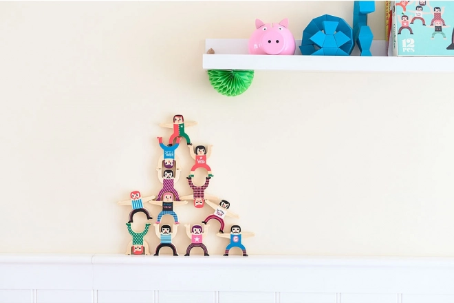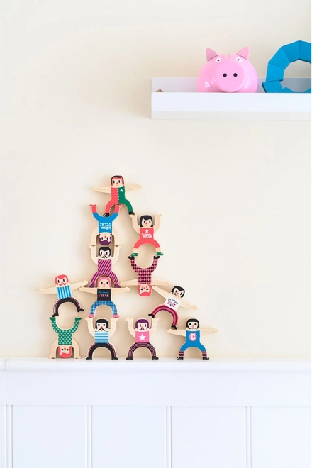 Uzbūvējiet savu akrobātu torni un pārbaudiet veiklību un fantāziju. Koka figūriņas košās krāsās var kraut daudzās stabilās un drosmīgās pozās, padarot šo rotaļlietu par lielisku izvēli kopīgām rotaļām un līdzsvara apguvei.