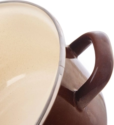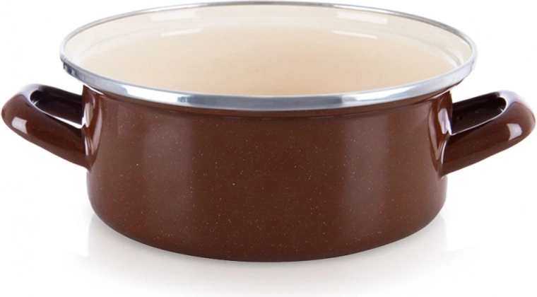 Elegants retro stila katls no Brown kolekcijas apvieno emaljas izturību un mūžīgu dizainu. Ārpuse un rokturi brūnā krāsā, iekšpuse krēmkrāsas emalja, augšējā mala no nerūsējošā tērauda lielākai ilgmūžībai. Pateicoties vienmērīgai siltuma izkliedei, lieliski piemērots zupām, mērcēm un sautējumiem.