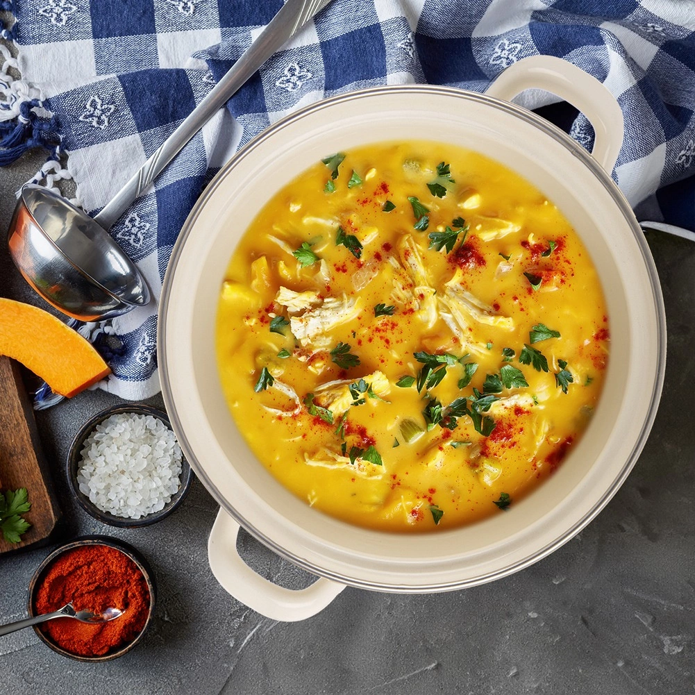 Iecienītais retro dizains apvienojas ar izturīgu emalēta tērauda izpildījumu, kas ir nekaitīgs veselībai un saudzīgs pret alerģiskiem cilvēkiem. Katls lieliski der zupām, mērcēm un sautējumiem, un pateicoties elegantajam izskatam, tas labi noder arī stilīgai pasniegšanai tieši uz galda.