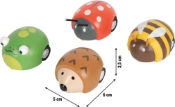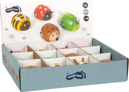Mīlīgs koka uz tinama mehānisma dzīvnieciņš pašiem mazākajiem. Pietiek to uzvilkt un vērot, kā tas pats aizripo pa grīdu. Rotaļlieta izgatavota no kvalitatīvas koksnes no ilgtspējīgiem avotiem, atbilst Eiropas drošības standartiem un veicina bērna prasmju attīstību. Pieejami četri motīvi – varde, mārīte, bite un ežuks. Attīsta sīko motoriku, roku–acu koordināciju un sniedz jautru kustību, pateicoties uz tinamam mehānismam.