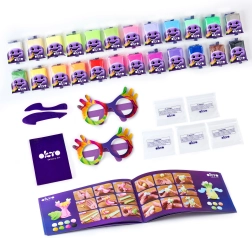 - 24× masas paciņas (10 g), attēlu pamācība, veidošanas rīki, 5× aizverams maisiņš, 2× papīra brilles