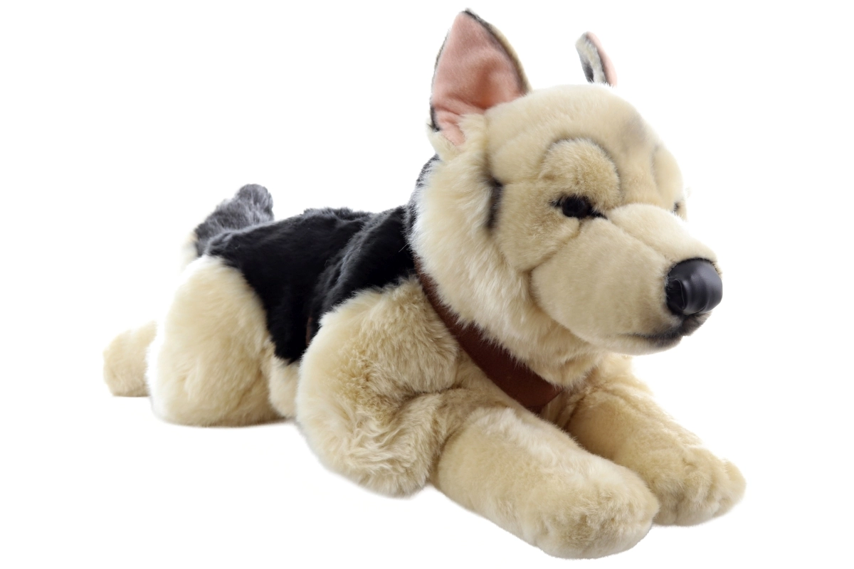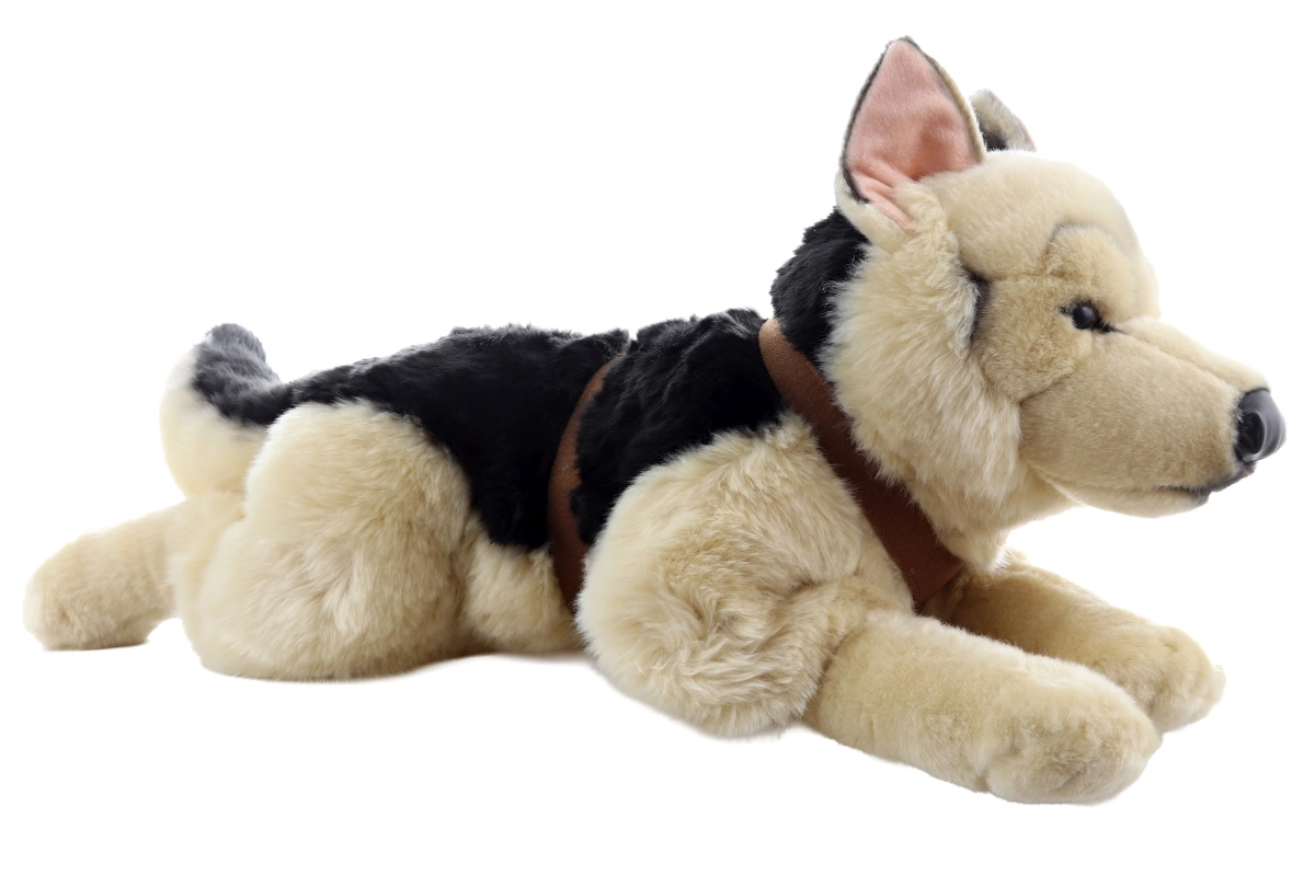 Šis elegantais pūkainais vācu aitu suns ar iemauktiem ir lielisks pavadonis ikdienas rotaļām un mīļošanai. Tā reālistiskais izpildījums ar bagātīgu bēšīgi-melnu kažoku un izteiksmīgām ausīm izskatās pārliecinoši un sajūsminās gan bērnus, gan pieaugušos. Pateicoties patīkami mīkstajai virsmai, tas lieliski guļ rokās un sniedz mierinājumu, kā arī kalpo kā dekoratīvs elements bērnu istabā.