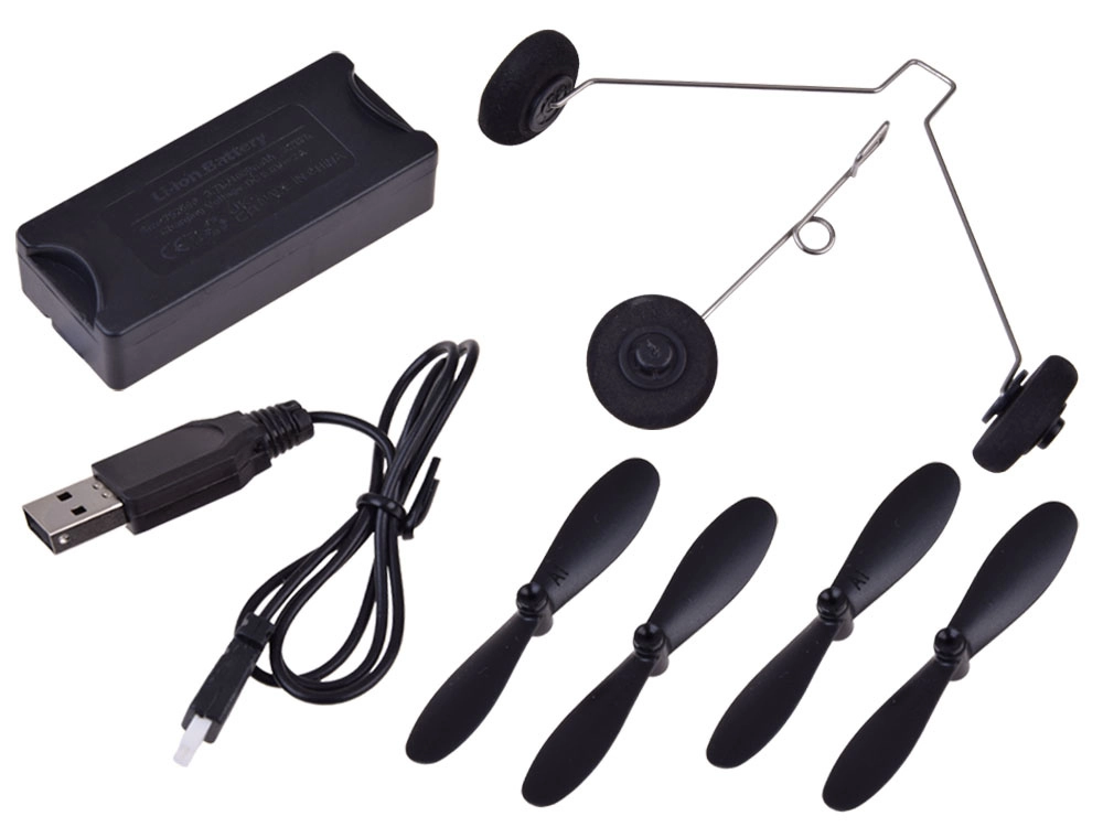 Komplektā atradīsiet rezerves propellerus, šasiju, USB kabeli un 2,4 GHz RC raidītāju. Vienkārši salieciet, uzlādējiet un lidojiet.