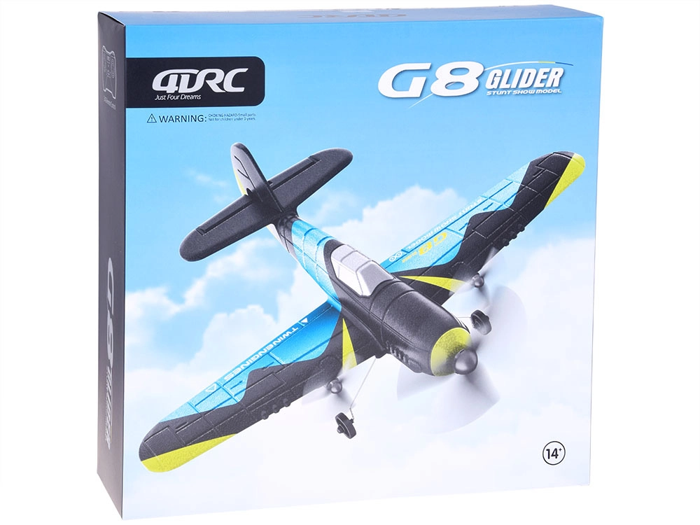 Bezvadu vadība ar 2,4 GHz nodrošina uzticamu savienojumu un precīzu vilces un virziena kontroli. EPP putas lieliski slāpē triecienus, tādēļ G8 Glider ir lieliska izvēle pirmajiem soļiem RC lidošanā un atpūtas lidojumiem brīvā dabā.