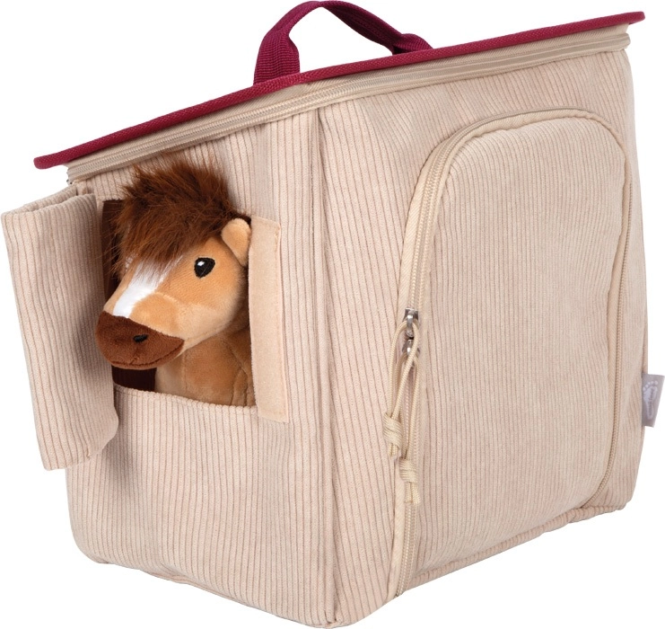 Izturīga kordauduma soma ar rāvējslēdzēju acumirklī pārvēršas par stallīti. Pateicoties rokturim, bērni to viegli paņem līdzi jebkur – ideāli spēlei mājās un ceļā.
