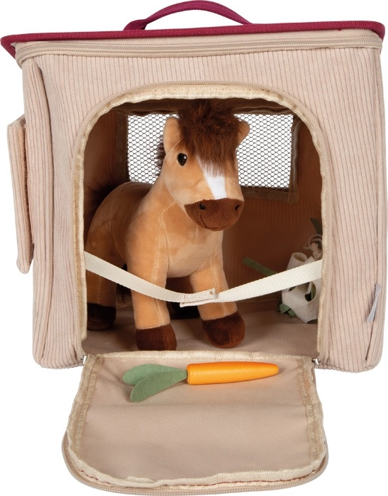 Šis rūpīgi izstrādātais small foot spēļu komplekts bērniem piedāvā visu, kas vajadzīgs zirgu pasaulei. Izturīgā kordauduma soma ar rāvējslēdzējiem īsā laikā pārtop par praktisku stallīti un piederumu glabātuvi. Pie stalliša var uzbūvēt aplociņu ar lipekļiem vai aizvērt to aplī kā izlaidumu – spēle ir reālistiska un rosina brīvu stāstu veidošanu.