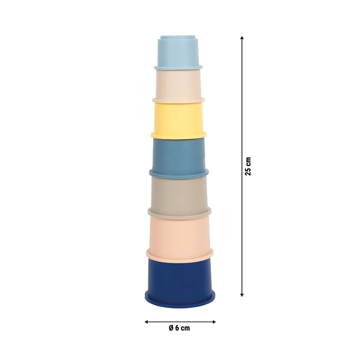 Komplekts ar 7 mīkstiem SMALL FOOT silikona kausiņiem bez BPA nodrošina jautru kraušanu un likšanu vienu otrā mājās, vannā un smilšu kastē. Pateicoties mīlīgiem dzīvnieku motīviem un dažādiem izmēriem, bērni dabiski attīsta sīko motoriku, acu–roku koordināciju un izmēru un formu uztveri. Materiāls ir drošs, elastīgs, bez smaržas un viegli mazgājams.