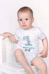 Nosviniet sava mazulīša pirmo gadiņu stilīgi ar oriģinālu New Baby bodiju ar jautru uzrakstu “Man jau 1 gads” un lielas vieninieka cipara ar baloniem apdruku. Bodijs izgatavots no kvalitatīvas 100% kokvilnas, kas ir maiga pieskārienam un saudzīga bērna ādai. Apdrukas krāsas ir sertificētas un drošas bērniem.